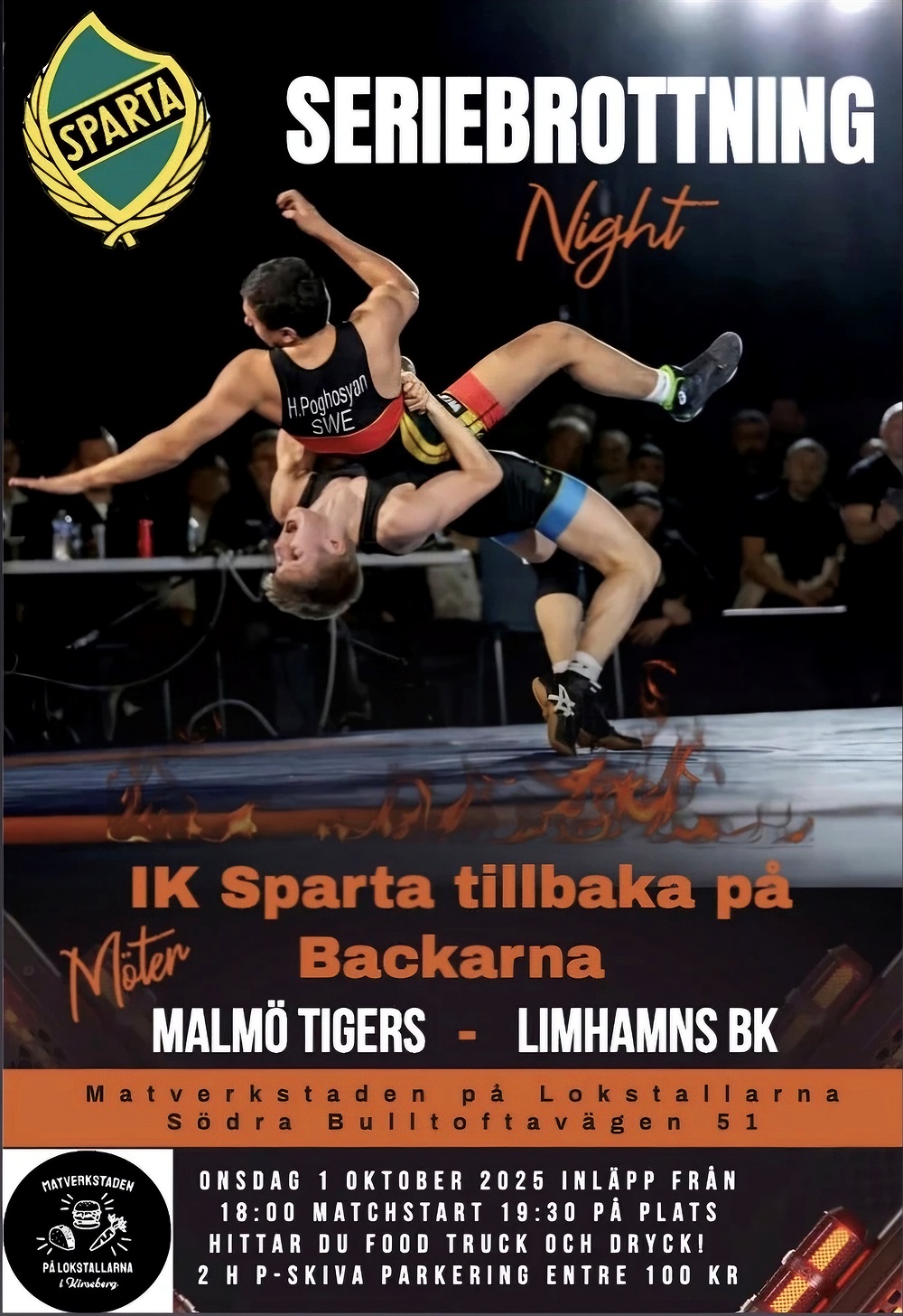 Kom förbi och njut av brottning samt god mat eller fika onsdag 1/10 insläpp kl.18:00.